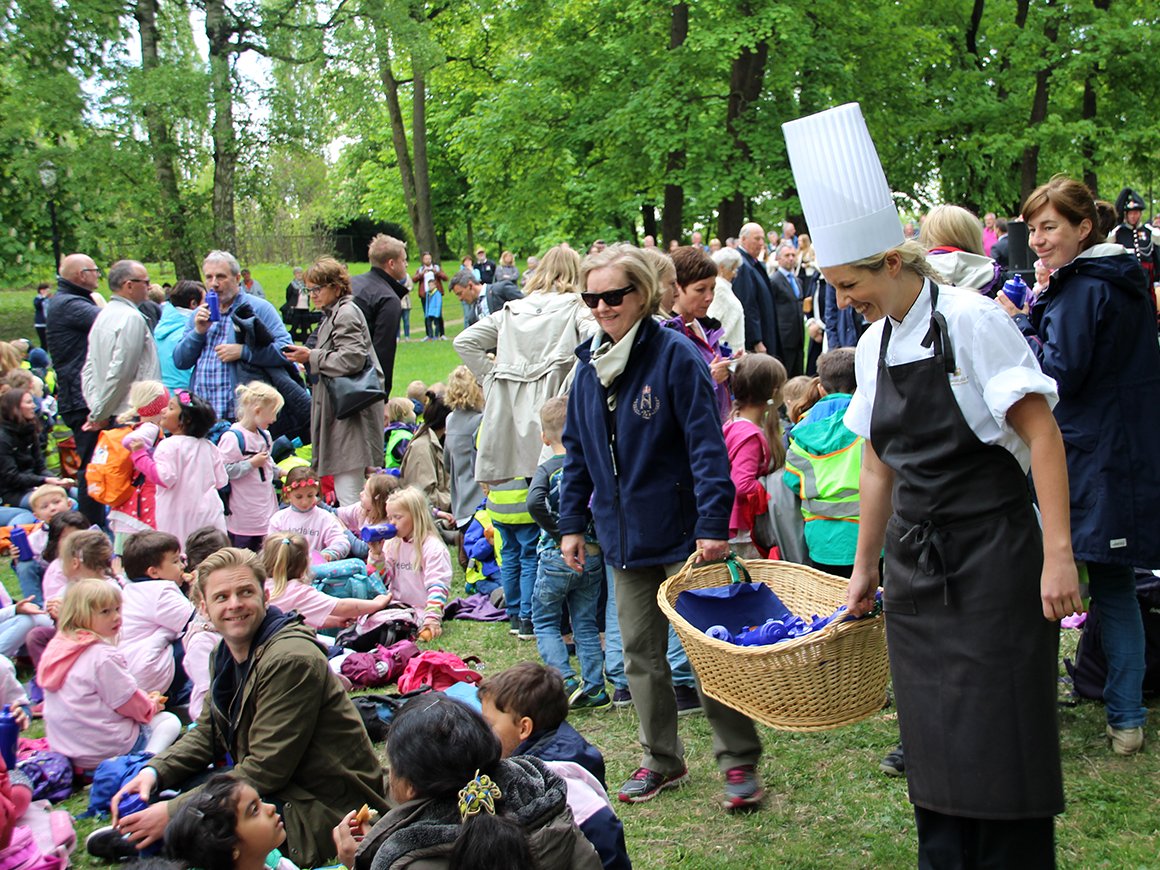 Så fint at alle dere ville komme hit og være sammen med oss i dag! Noen av dere har tatt både t-bane, buss og trikk for å komme hit. Andre har hatt kortere vei. Uansett er vi veldig glade for at så mange har tatt turen fra barnehagen og hit til Slottsparken. Og det er hyggelig at dere har tatt med dere så mange voksne også.