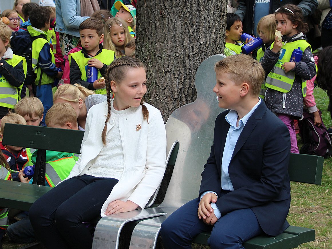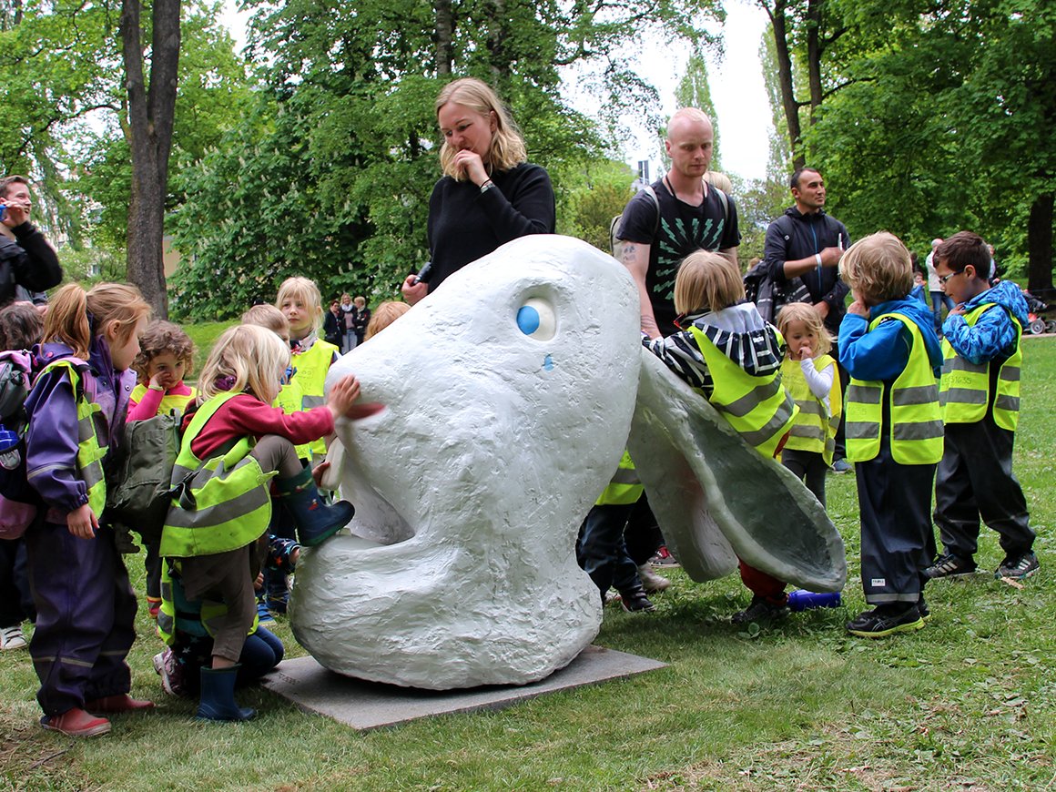 Noen av dere har kanskje vært i Slottsparken før, mens andre av dere er her for første gang. Vi håper i hvert fall at det ikke er siste gang dere er her, at dere vil fortelle familien og vennene deres om parken, og at dere vil komme tilbake – blant annet for å leke med skulpturene. For de er her for dere, de er til å ta på, og ikke bare til pynt.