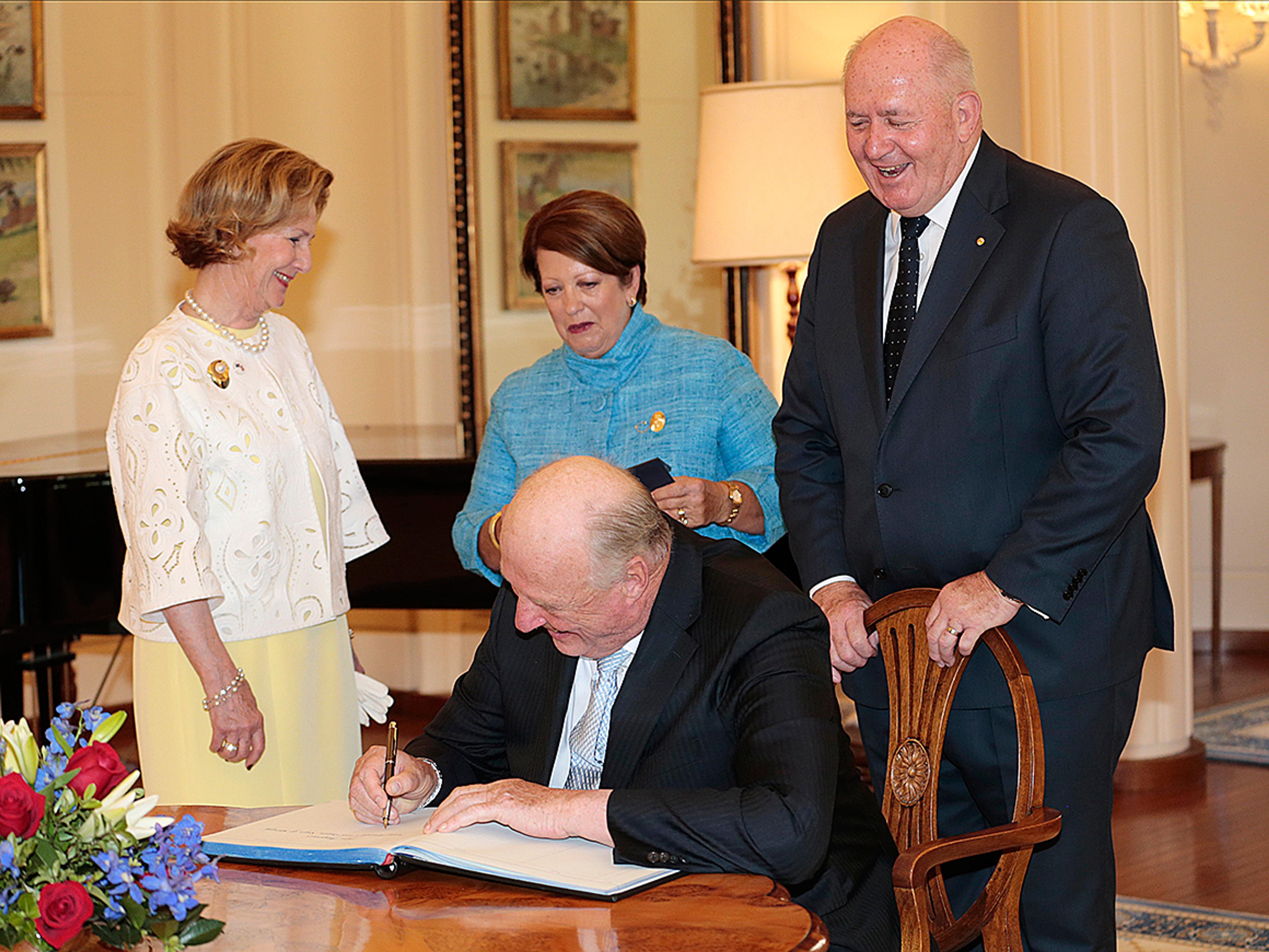 Queen Sonja and I would like to thank you for the warm welcome we have received here in Australia. This is the very first official visit by a Norwegian head of state to Australia, but it is not the first time the Queen and I have visited. In 1970, we had the pleasure of experiencing your beautiful country and I also had the opportunity to participate in the 5.5 metre world championships in sailing off Palm Beach in Sydney that year. This was a truly wonderful experience, even though the Australian David Forbes crossed the finishing line first.