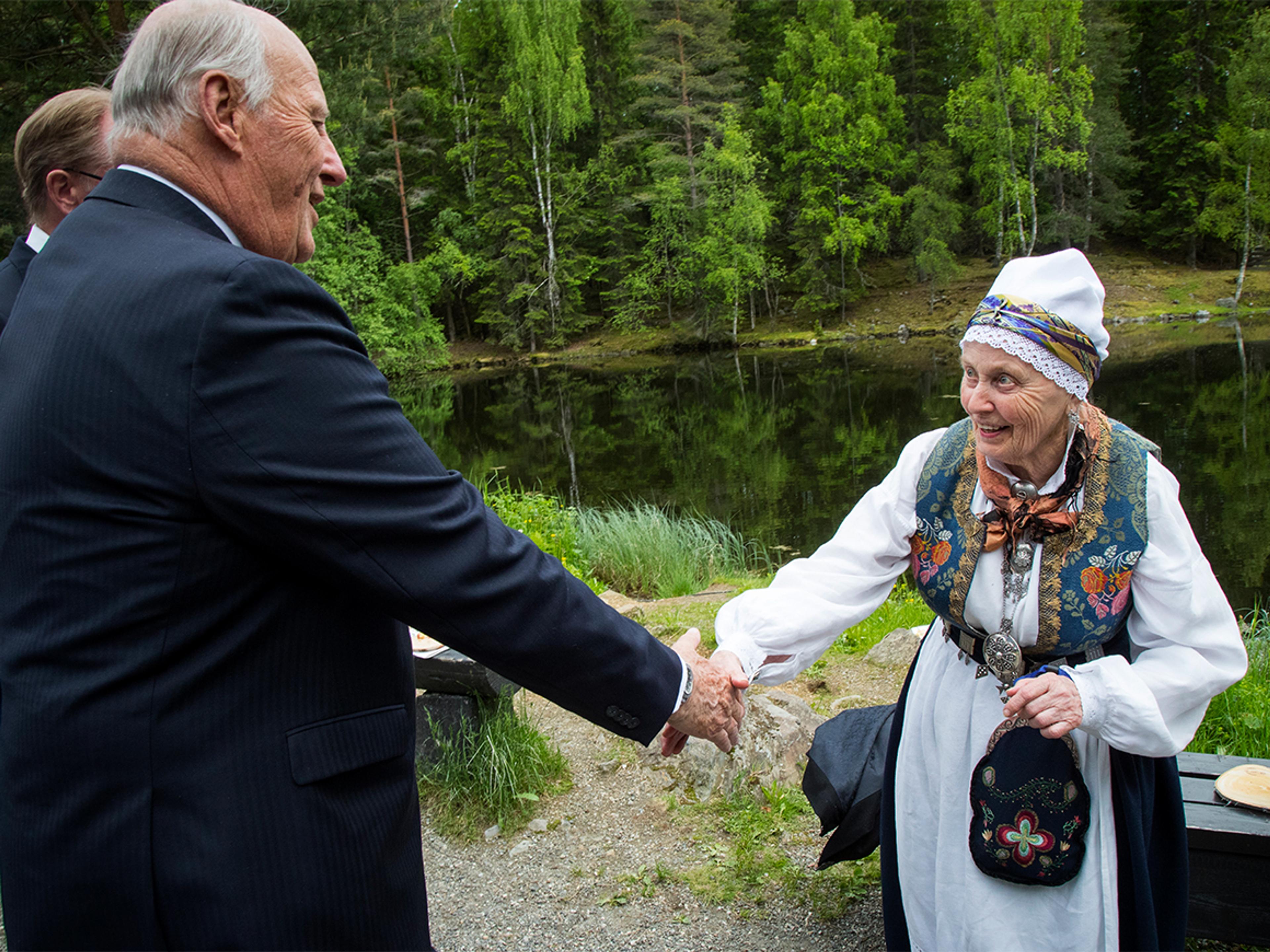 For Hedmark og Oppland betyr mye for Dronningen og meg. Det var i Støa i Trysil at min mor, mine søstre og jeg måtte flykte hjemmefra til Sverige, den 10. april 1940. Det er til Sikkilsdalen vi drar når vi trenger å slappe av. Og på Jørstad her på Maihaugen er vi ofte. Dette var basen vår under de fantastiske OL-dagene i 1994.