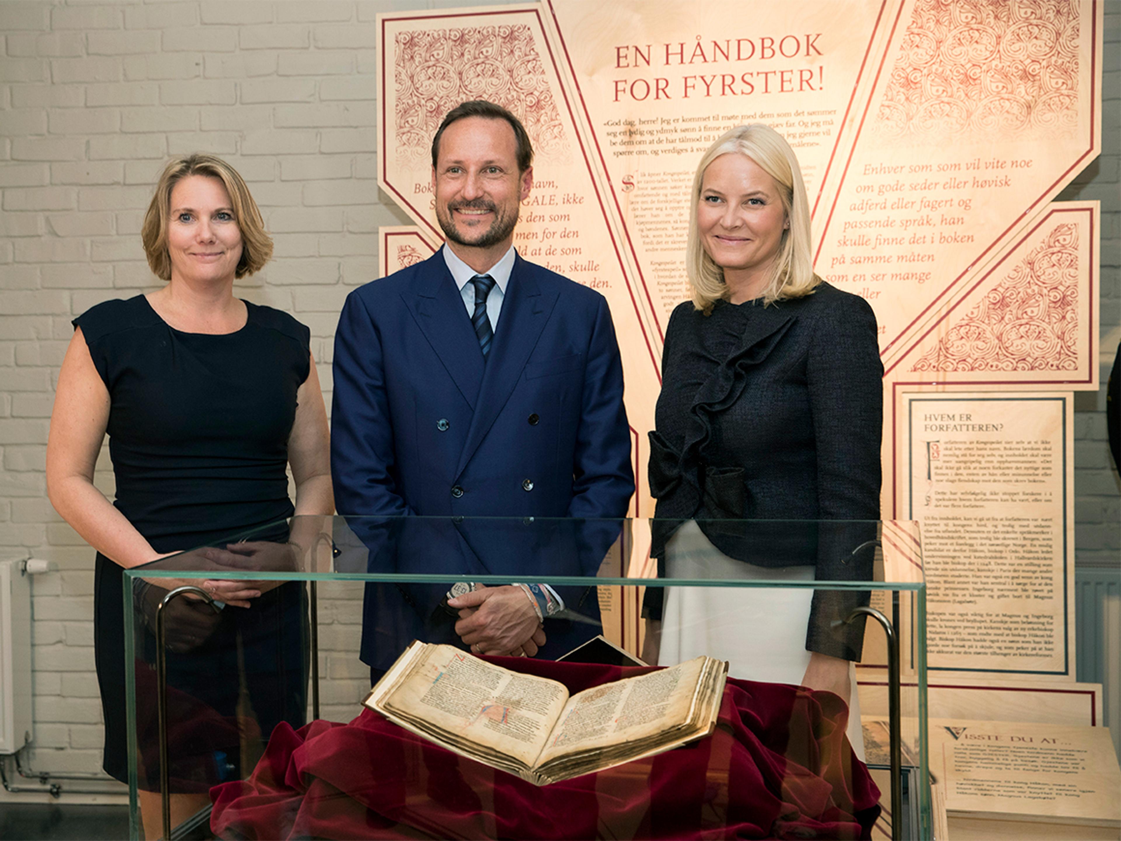 Til daglig oppbevares Kongespeilet i København. For første gang er dette unike manuskriptet nå lånt ut til et norsk museum – og kan sees her på Slottsfjellmuseet.