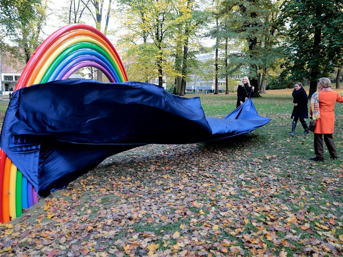 De to første skulpturene som ble avduket var «Geometrisk rev» og «Kanin i trøbbel». Mange barn som besøker Slottsparken har stor glede av disse figurene og bruker dem i leken sin. Det synes vi er veldig hyggelig.